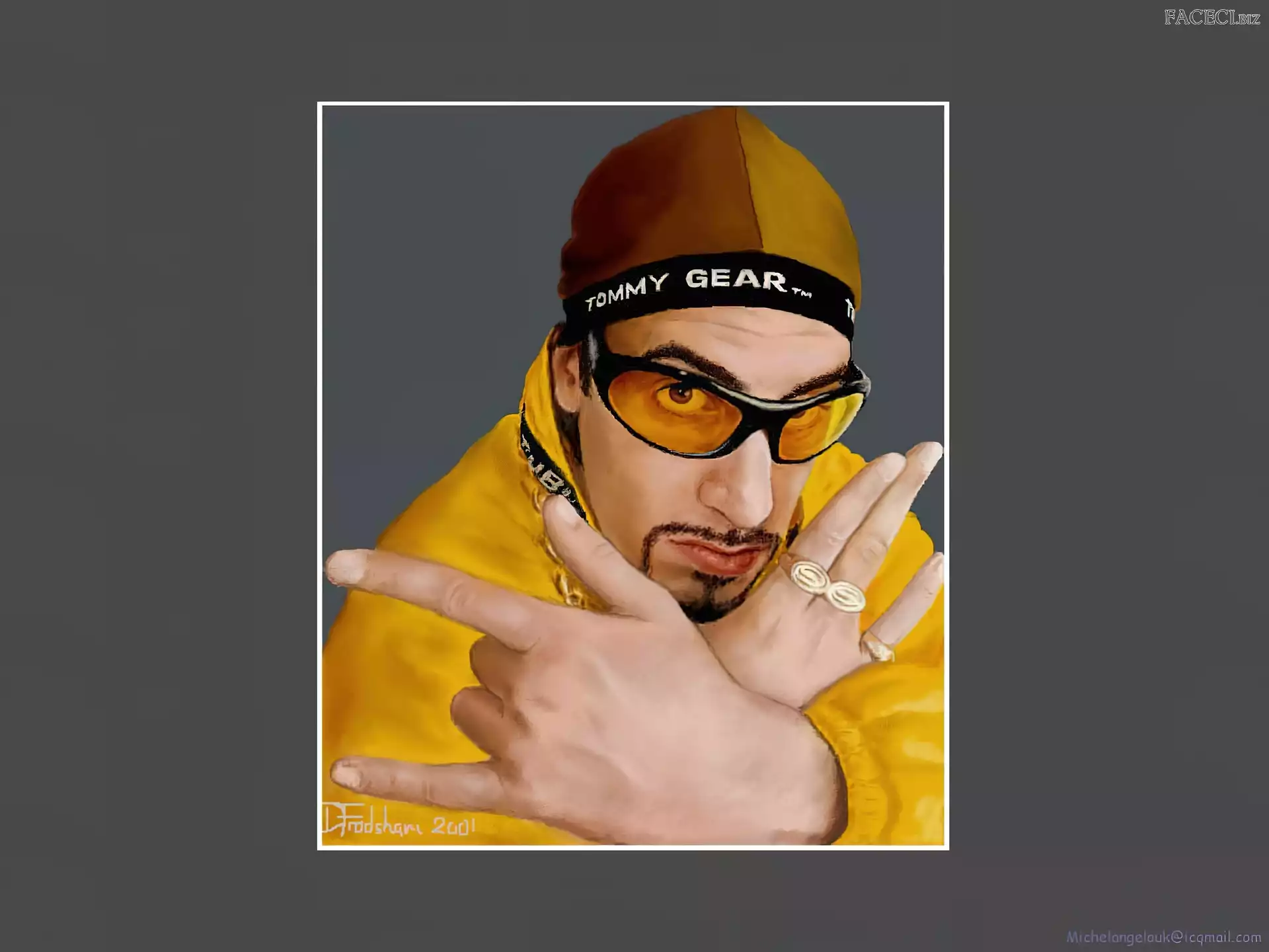 Sasha Baron Cohen, ali g złoty strój, Sasha Baron Cohen, okulary Sasha Baron Cohen, żółty strój Sasha Baron Cohen, gruby łańcuch Sasha Baron Cohen, borat Sasha Baron Cohen, zdjęcia Sasha Baron Cohen, niebieski dres